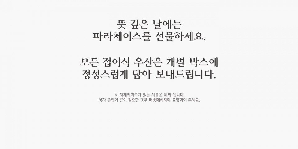 파라체이스(PARACHASE)는 유니크한 디자인과 높은 내구성을 지닌 고급 우산을 만드는 패션 우산 전문 브랜드입니다.