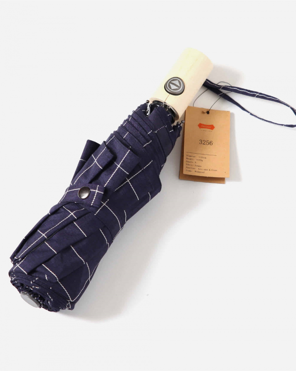3257 스퀘어 패턴 패브릭 포플러 전자동 3단 우산 양산 겸용