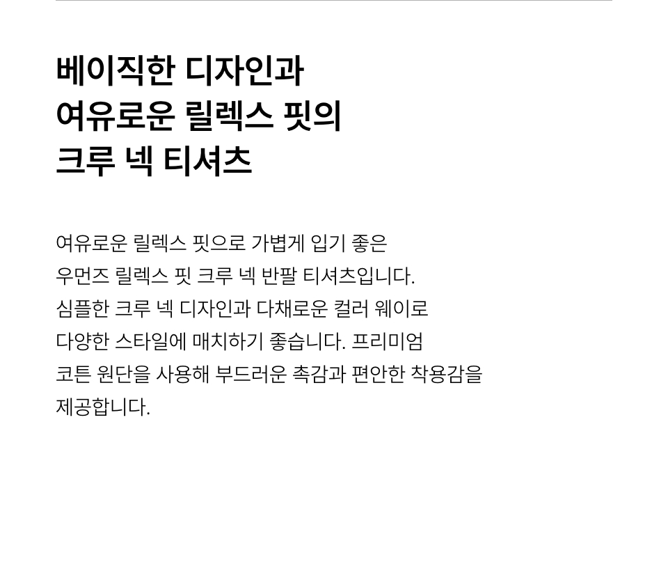 우먼즈 릴렉스 핏 크루 넥 티셔츠 [블랙]