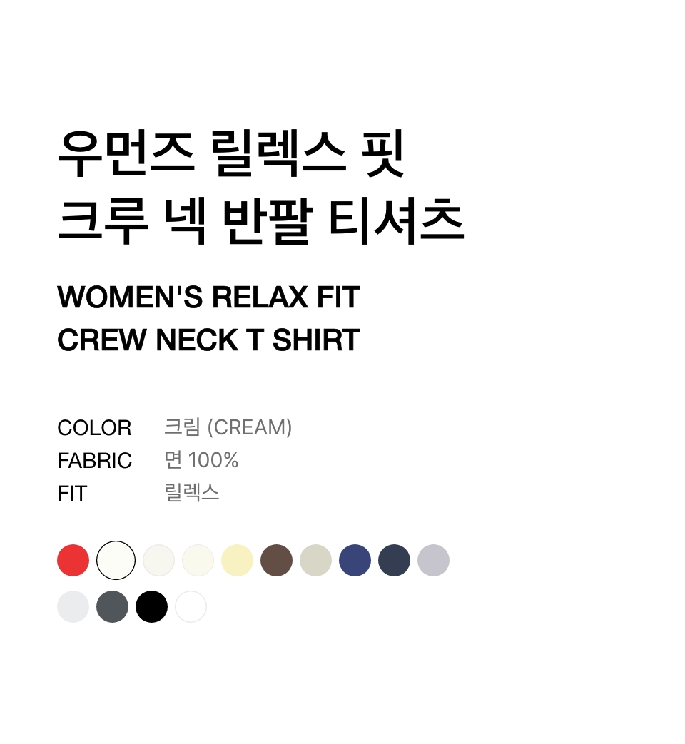 우먼즈 릴렉스 핏 크루 넥 티셔츠 [크림]
