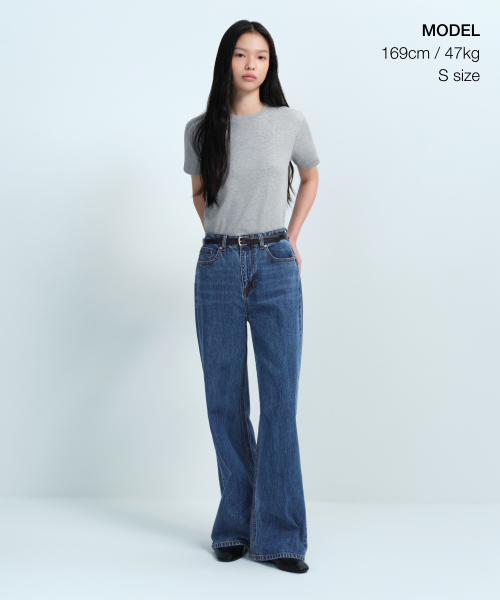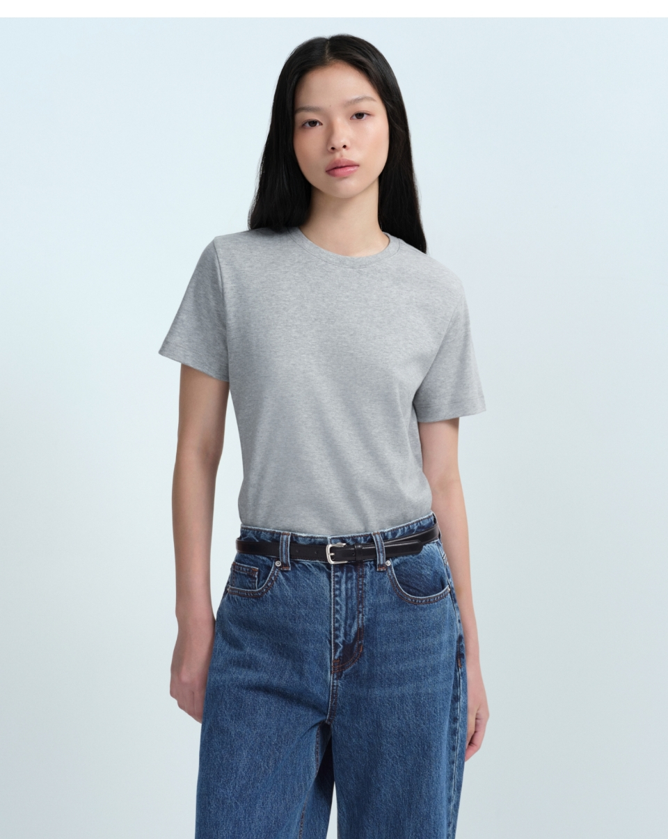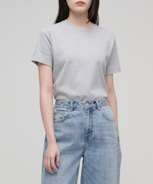 우먼즈 베이식 크루 넥 티셔츠 [멜란지 라이트 그레이]