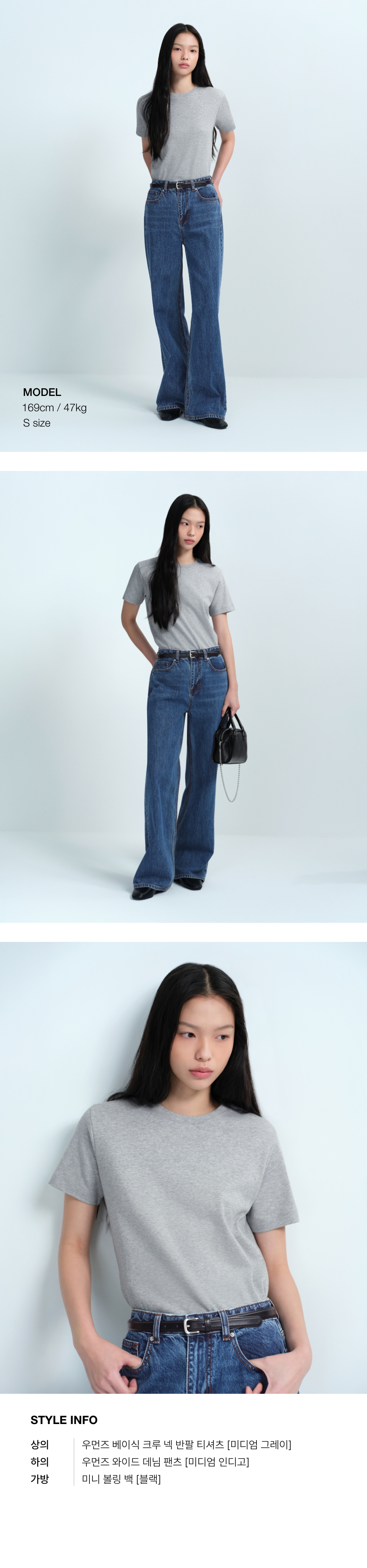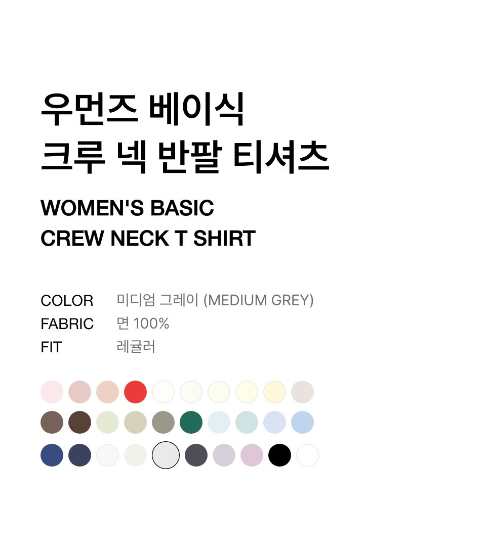 우먼즈 베이식 크루 넥 티셔츠 [미디엄 그레이]