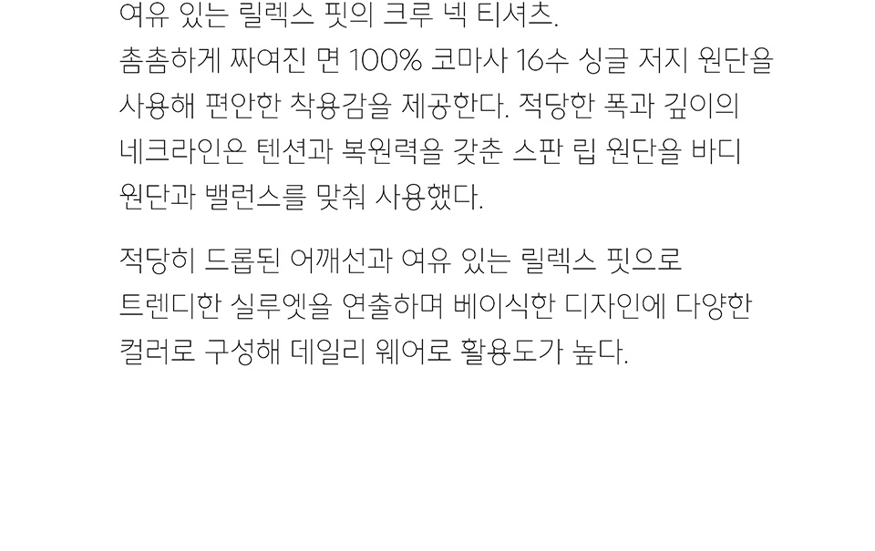 릴렉스 핏 크루 넥 티셔츠 [건메탈]