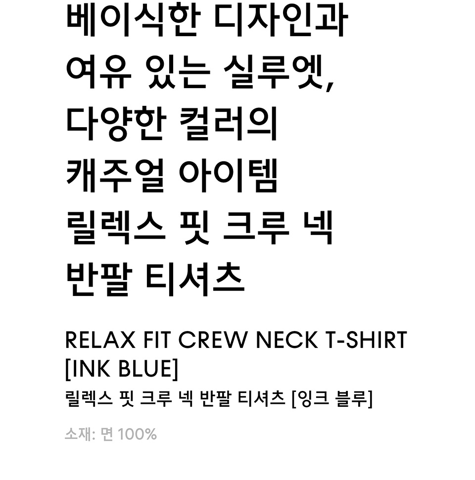 릴렉스 핏 크루 넥 티셔츠 [잉크 블루]