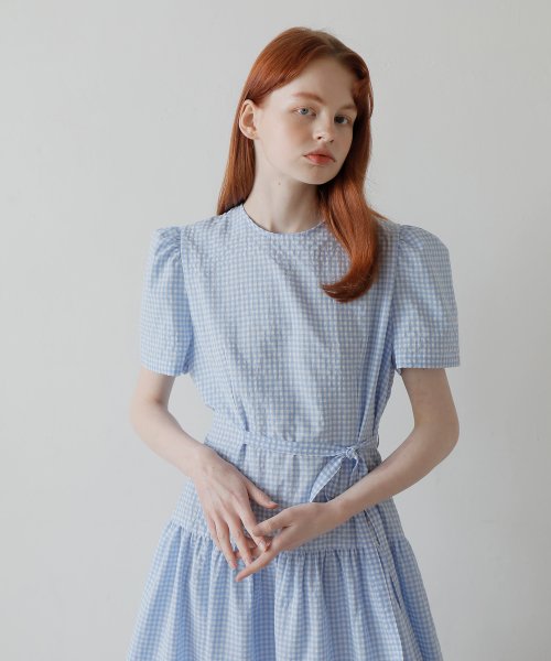 잔잔한 깅엄 체크의 느낌이 청량감을 줍니다.