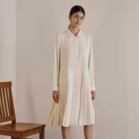 퍼프 소매와 셔링 스커트 디테일이 더욱 여성스럽습니다.