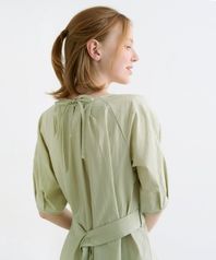 허리의 다트에 고정된 벨트로 묶어 스타일링 할 수 있습니다.