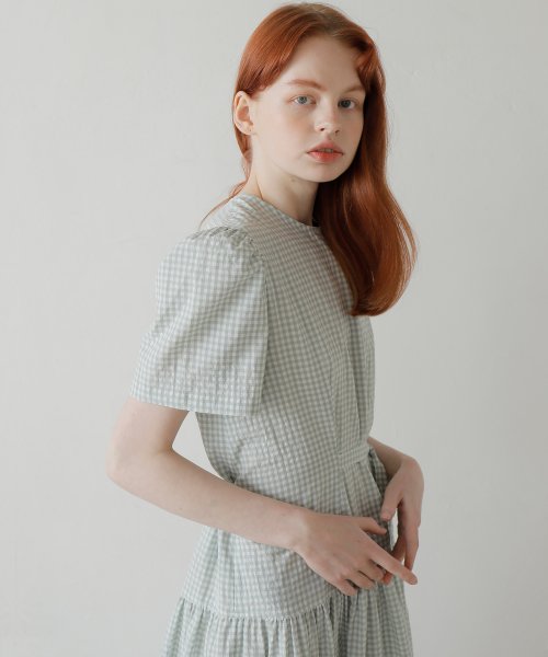 잔잔한 깅엄 체크의 느낌이 청량감을 줍니다.