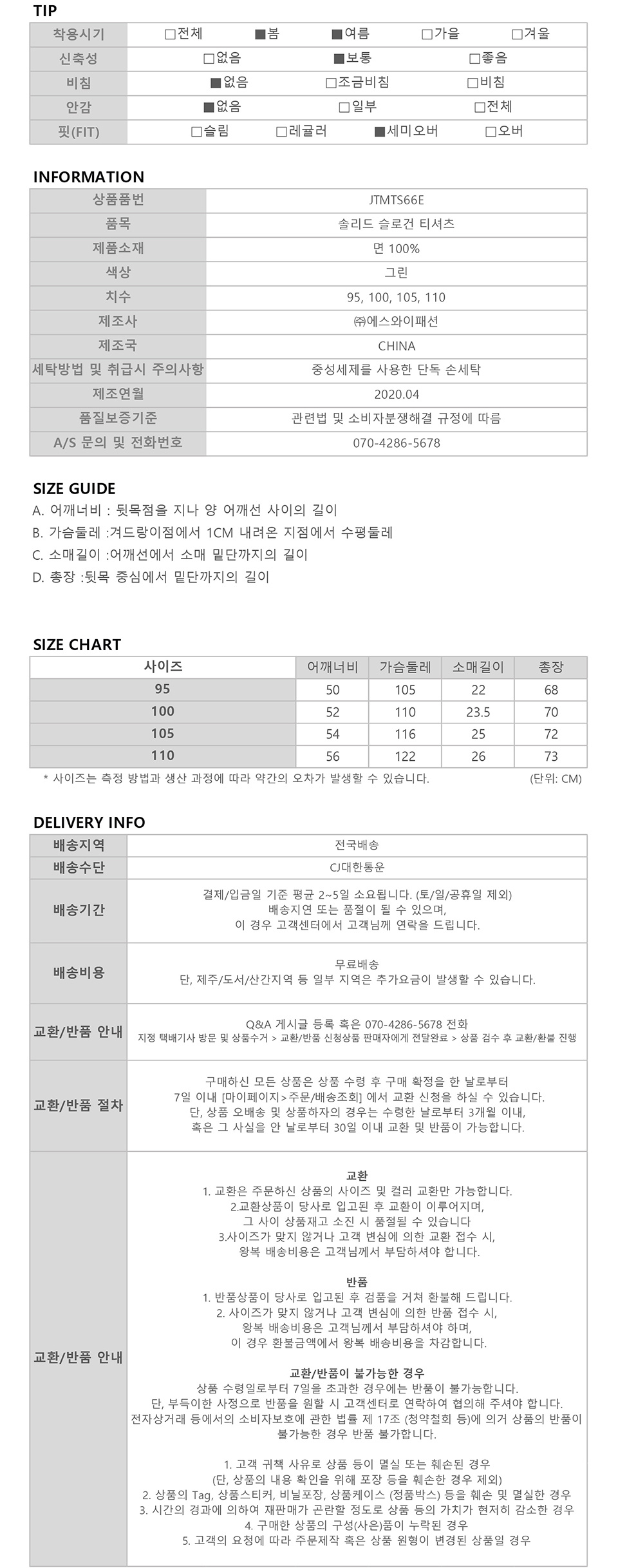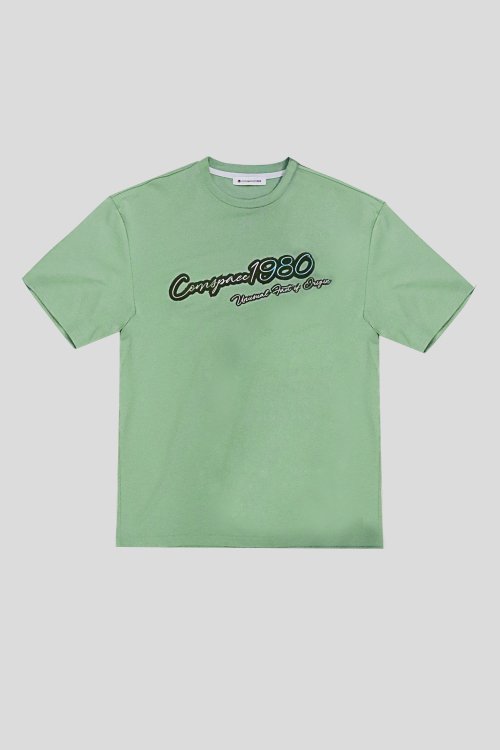 솔리드 슬로건 세미오버핏 티셔츠 그린