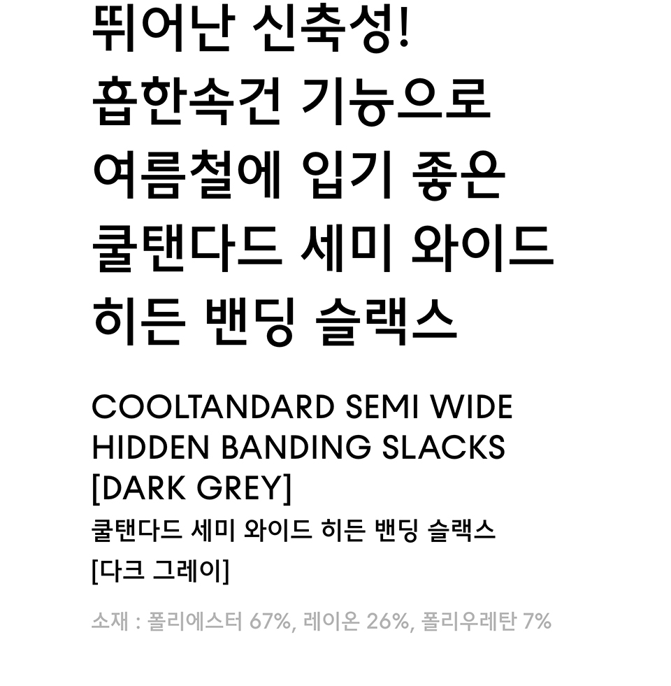 [쿨탠다드] 세미 와이드 히든 밴딩 슬랙스 [다크 그레이]