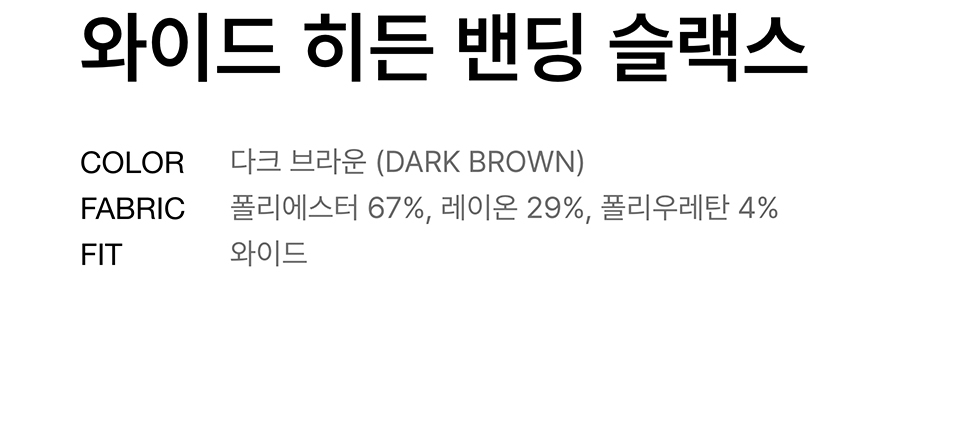 와이드 히든 밴딩 슬랙스 [다크 브라운]