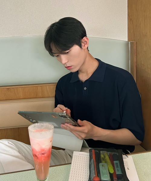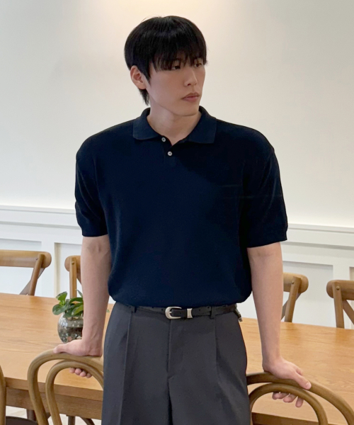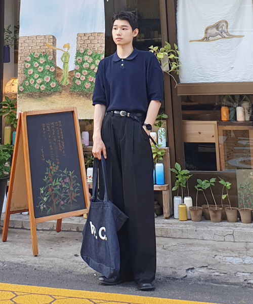 세미 와이드 데님 팬츠 [WASHED DARK BLUE]