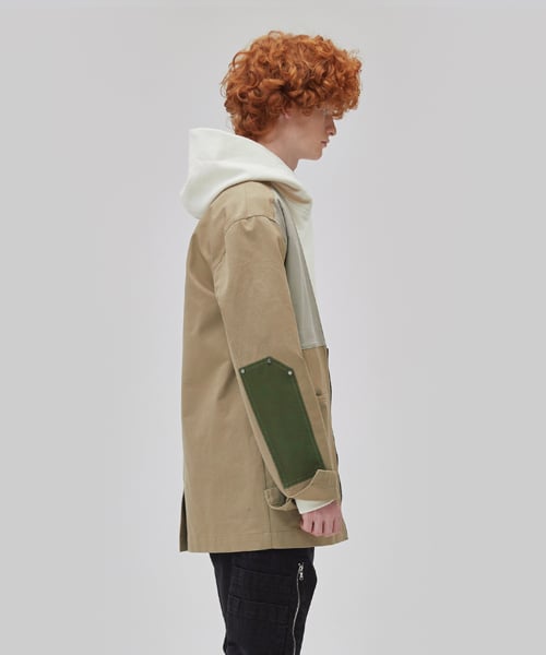 ZEN한 감성을 응용한 산을 와펜화 시킨 오버사이즈 자켓.