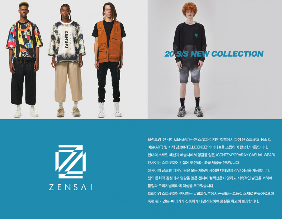 젠사이(ZENSAI)는 틀에 얽매이지 않는 자유로움과 유연한 실루엣을 제안하는 브랜드입니다. 정교하게 풀어낸 젠사이의 트렌디한 디자인은 고객에게 편안한 착용감을 제공하는 동시에 독특한 경험을 선사합니다. 우리는 동시대의 미학을 담아 과감하면서도 세련된 디자인을 통해 영감을 전달합니다.