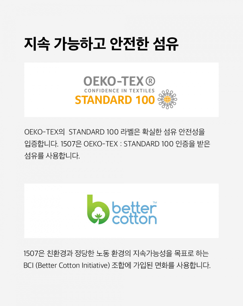 1507(일오공칠)은 그 시작인 창고 번지수 '1507'을 의미하며, 다양한 라이프스타일을 가진 사람들의 요구를 적극적으로 반영하고 그들의 더 나은 삶을 위해 노력하는 브랜드입니다. 2대에 걸친 양말 제작의 노하우로 높은 품질과 심플한 디자인의 양말을 제작하며, 우수한 품질과 합리적인 가격의 언더웨어를 제공합니다. 품질에만 집중하여 최소의 디자인으로 최대 퀄리티의 상품을 제작합니다.