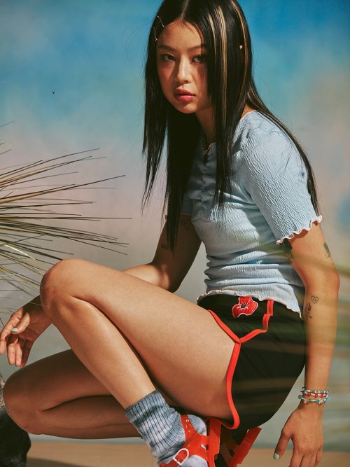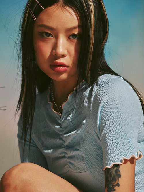 독특한 아름다움을 주는 슬림 사이즈의 하프 탑 아이템입니다.