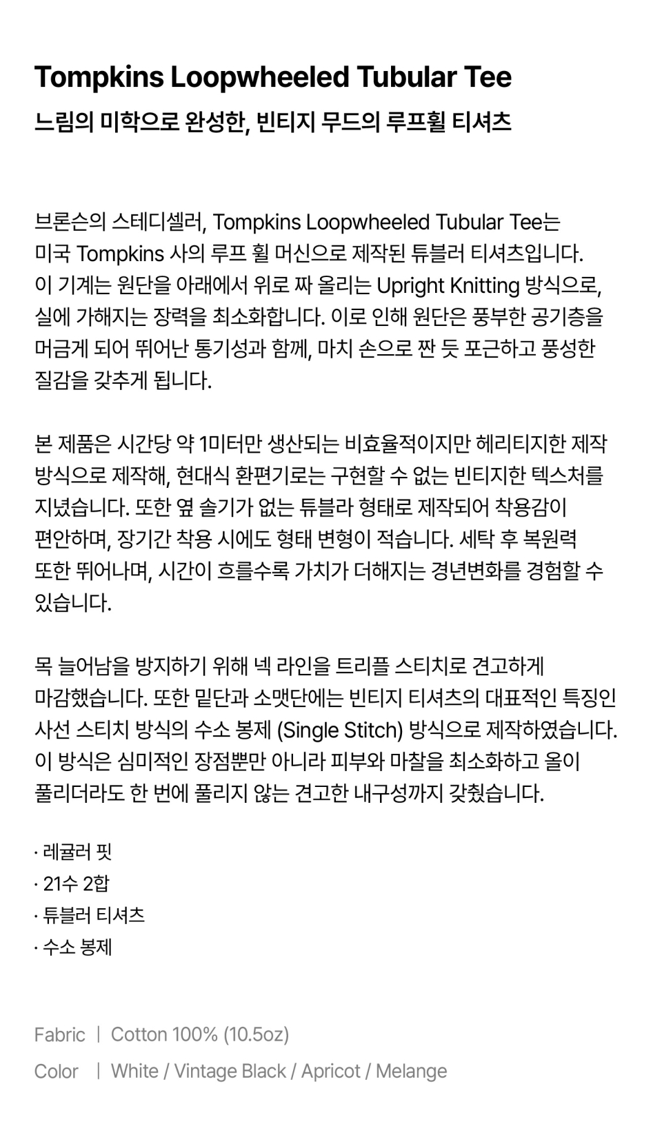Tompkins Loopwheeled Tubular Tee 4 Color