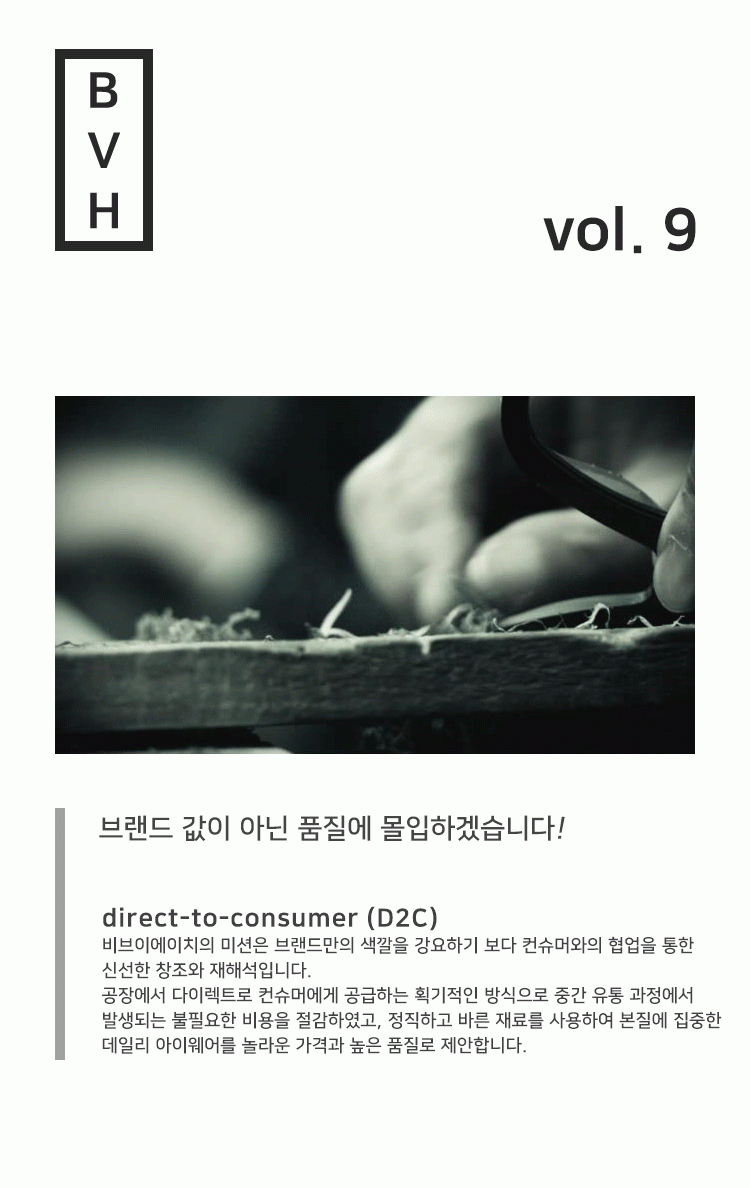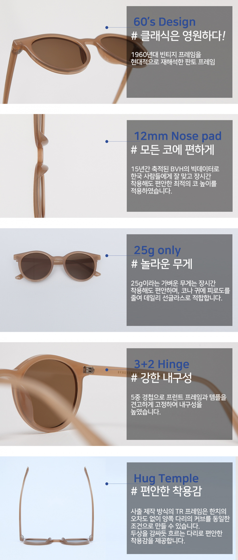 BVH EYEWEAR(비브이에이치)는 여러분야의 아티스트들과의 콜라보레이션으로 새로운 문화를 만들고 크리에이티브한 상품들을 제안하고 예술적인 고유의 디자인 프로세스를 거쳐 기획, 제작됩니다.