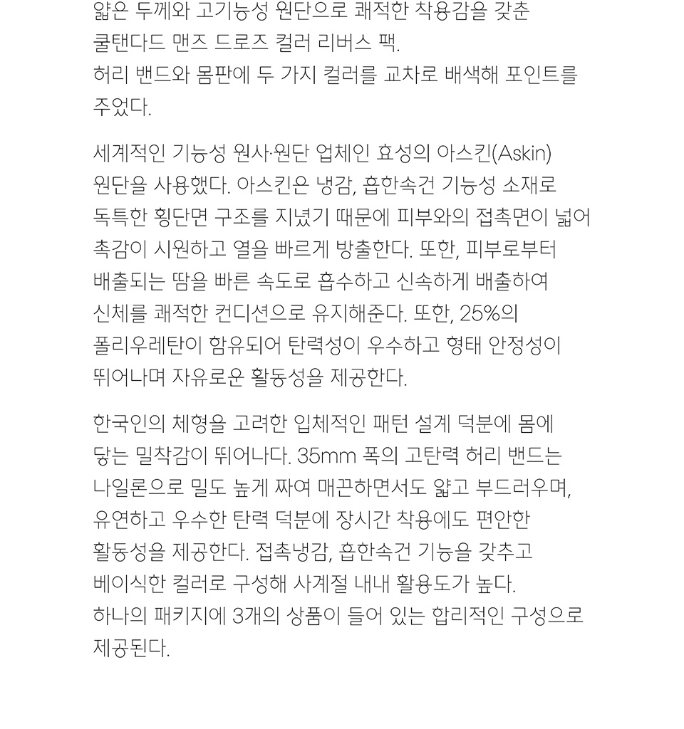 [쿨탠다드] 맨즈 드로즈 컬러 리버스 3팩
