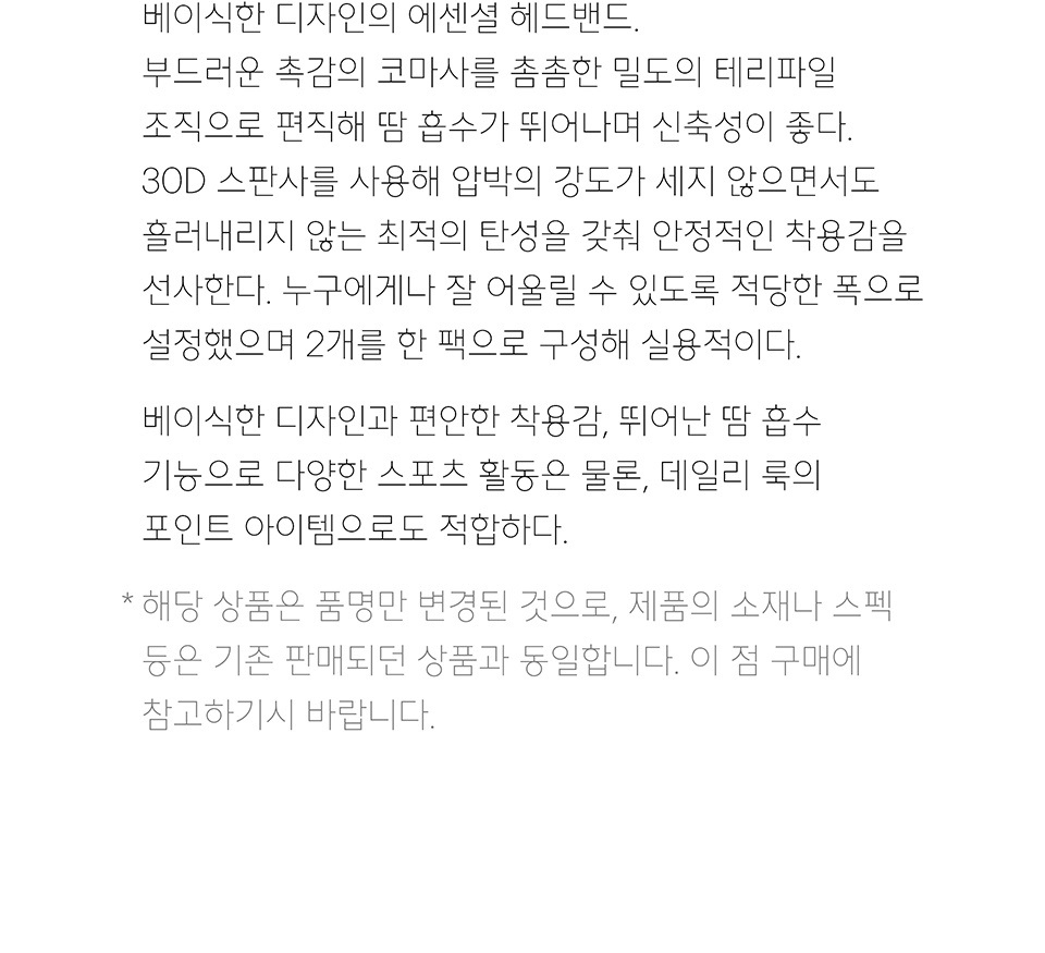 에센셜 헤드밴드 2팩 [화이트/블랙]