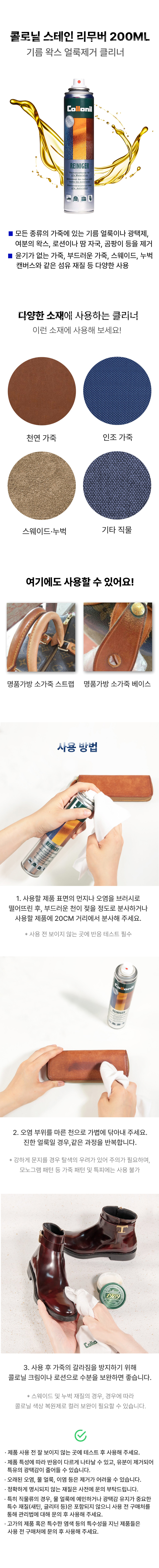 스테인 리무버 200ml 가죽 스웨이드 얼룩 제거 클리너