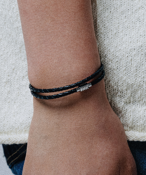 BW001 [써지컬스틸] 베이직 레이어드 레더 팔찌