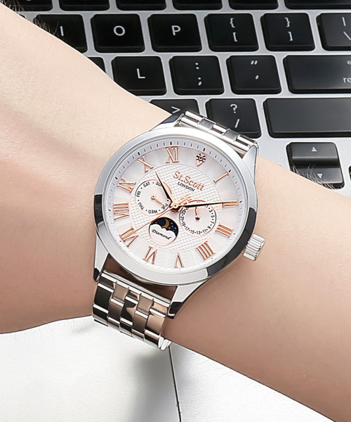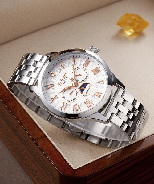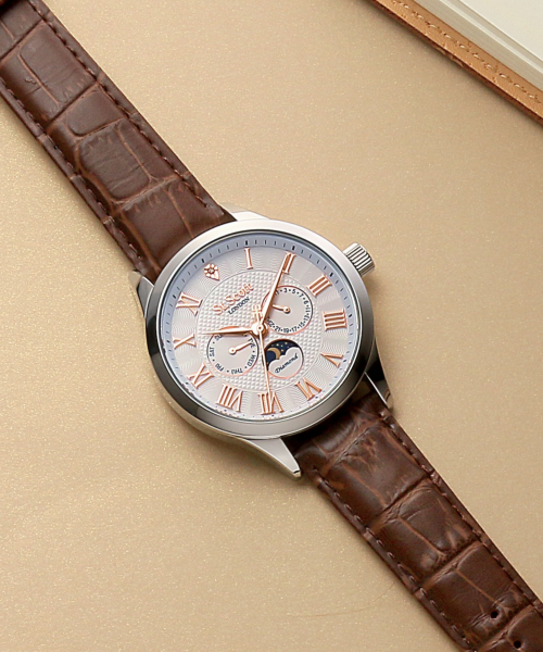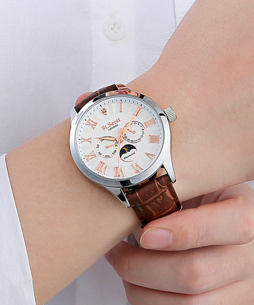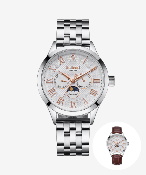 [다이아몬드] 헬리오스 썬앤문 메탈 시계 - 실버 + 가죽밴드 / ST7502M-SSS