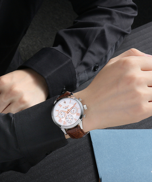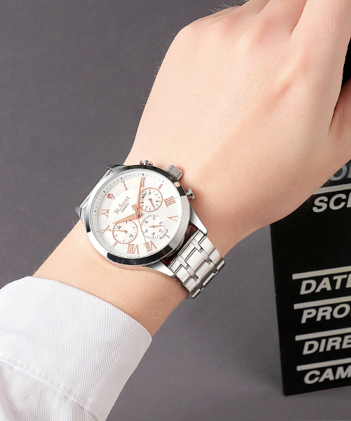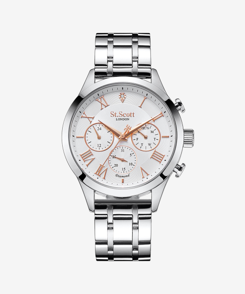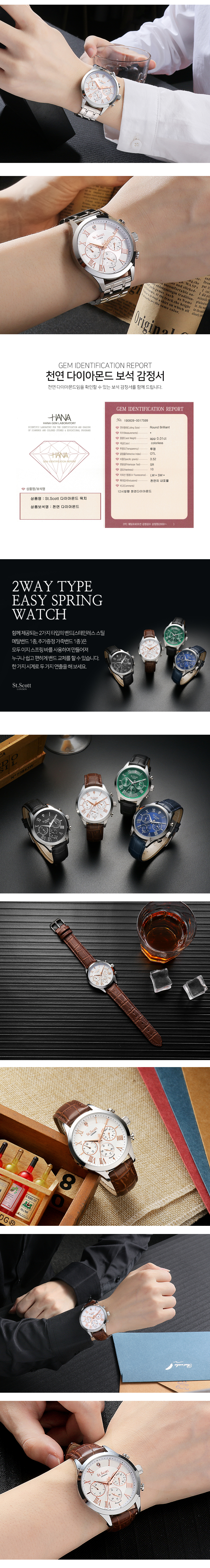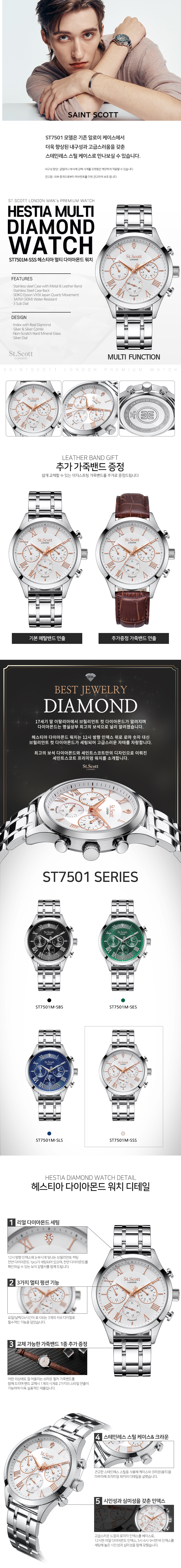 헤스티아 다이아 멀티 시계 + 가죽 밴드 - 화이트 / ST7501M-SSS1