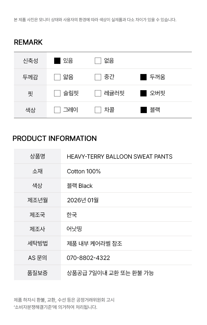 HEAVY-TERRY BALLOON SWEAT PANTS (Black)