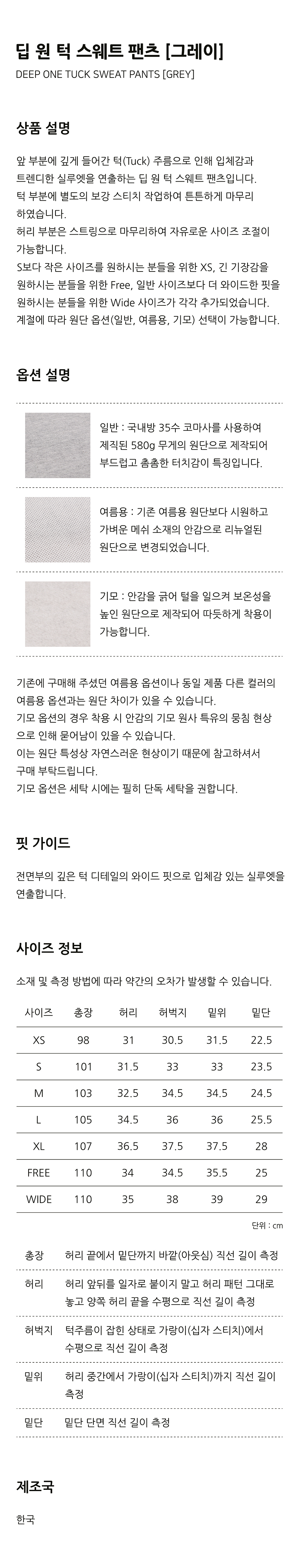 (Renew Ver.) 원턱 와이드 스웨트 팬츠 ( 8Color ) ( 기모선택 )