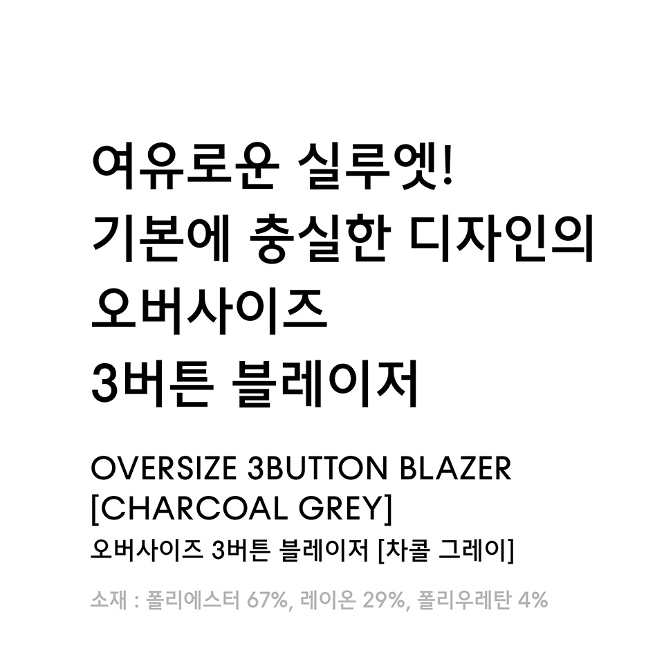 오버사이즈 3버튼 블레이저 [차콜 그레이]