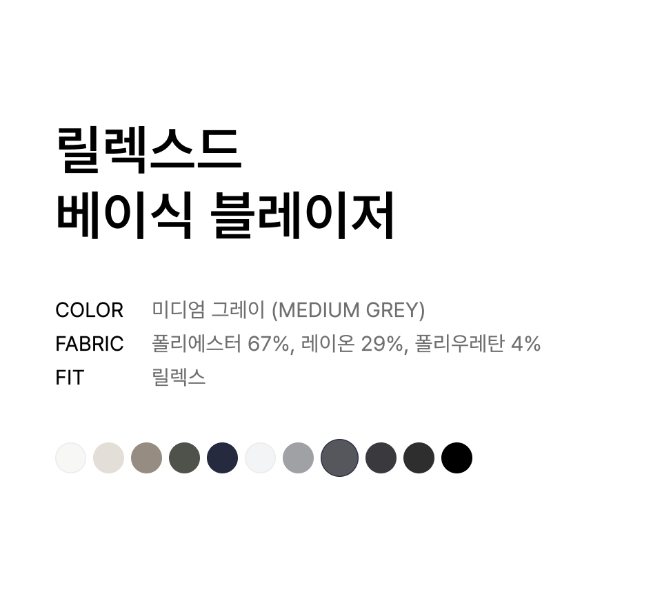 릴렉스드 베이식 블레이저 [미디엄 그레이]
