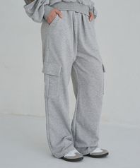 원턱 와이드 카고 스웻 팬츠 (멜란 그레이)