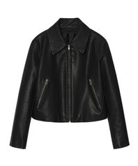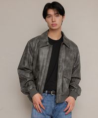 신세틱 레더 워싱 크롭 자켓 [블랙]