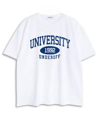오버핏 크루넥 유니버시티 반팔 티셔츠 화이트블루
