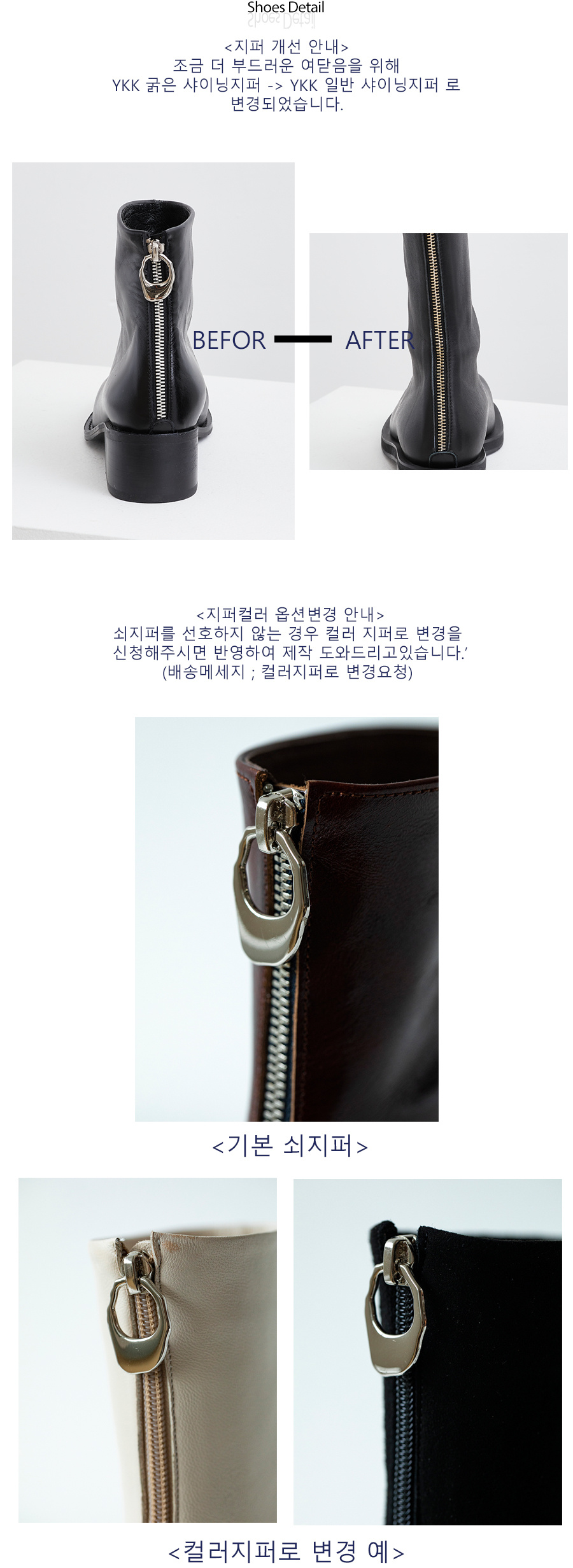 발볼넓힘,굽높이변경 등의 옵션변경 제작건의 경우 고객님의 요청에 의해 변경 제작된 상품으로 사이즈교환, 반품이 불가함을 사전 양해부탁드립니다.