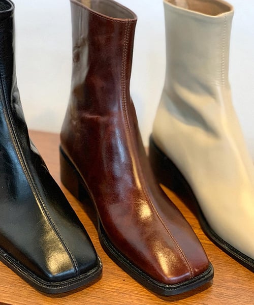 네모난 앞코가 모던하고 시크하게 신기 좋은 슈즈입니다.