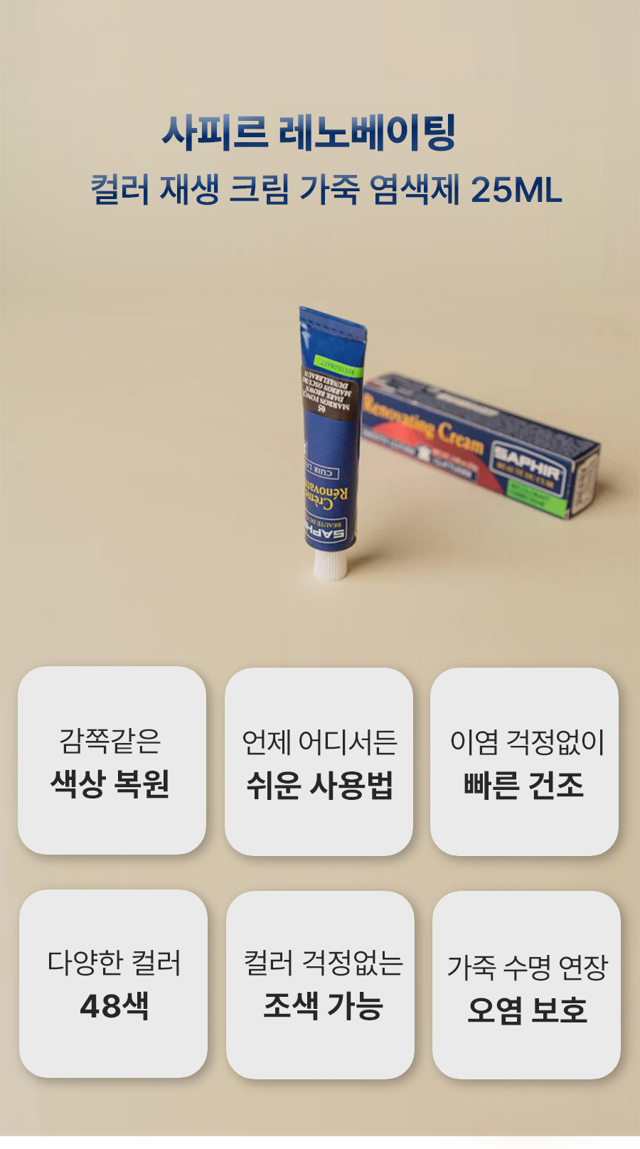 레노베이팅 가죽 컬러 재생 크림 25ml 스크래치 색상 복원