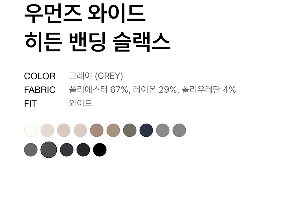 우먼즈 와이드 히든 밴딩 슬랙스 [그레이]