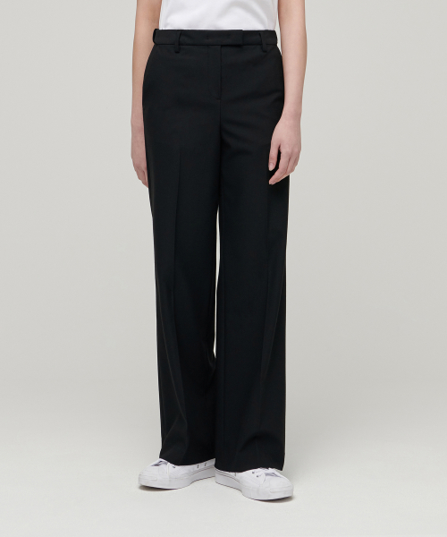 우먼즈 스트레이트 히든 밴딩 슬랙스 [블랙]