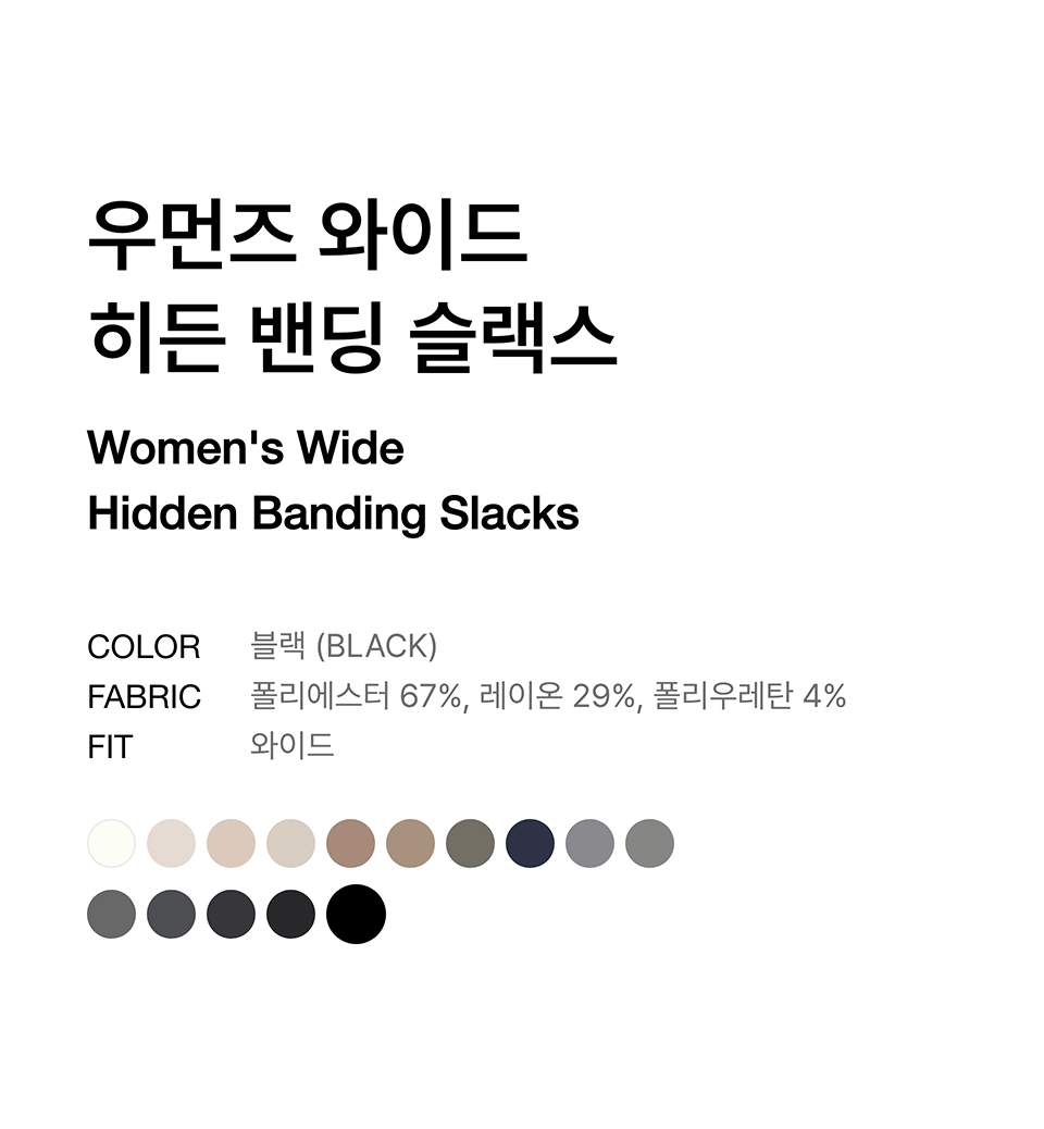 우먼즈 와이드 히든 밴딩 슬랙스 [블랙]