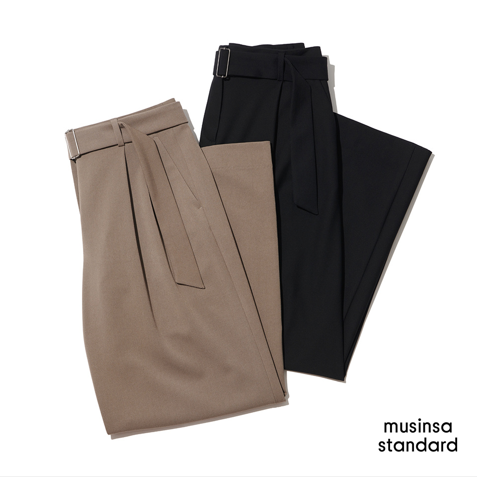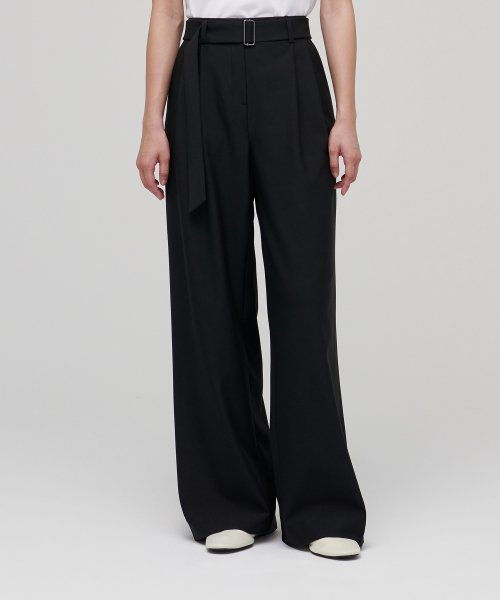 우먼즈 리얼 와이드 벨티드 슬랙스 [블랙]