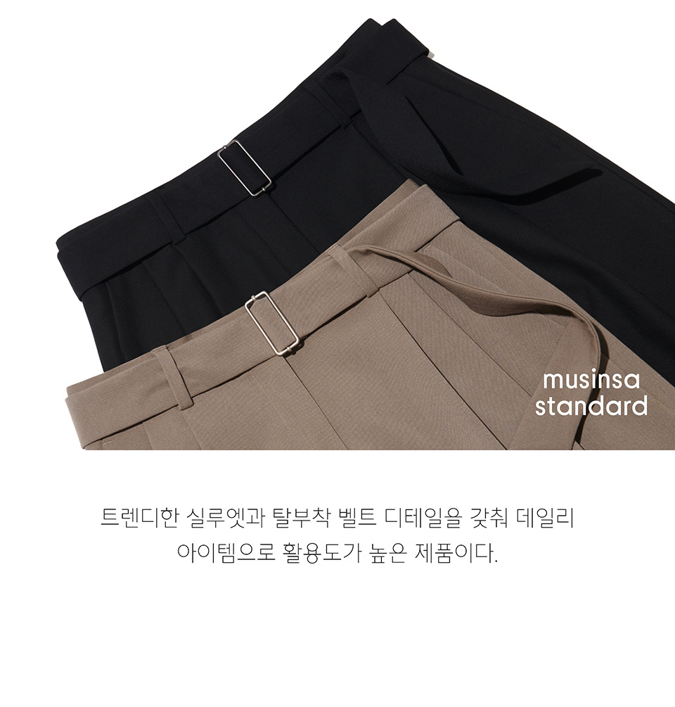 우먼즈 리얼 와이드 벨티드 슬랙스 [베이지]