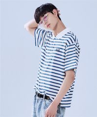 서클 스타로고 스트라이프 폴로 티셔츠_크림
