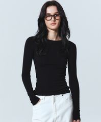 [ESSENTIAL] MINIMAL ROUND SLEEVE TOP_BLACK