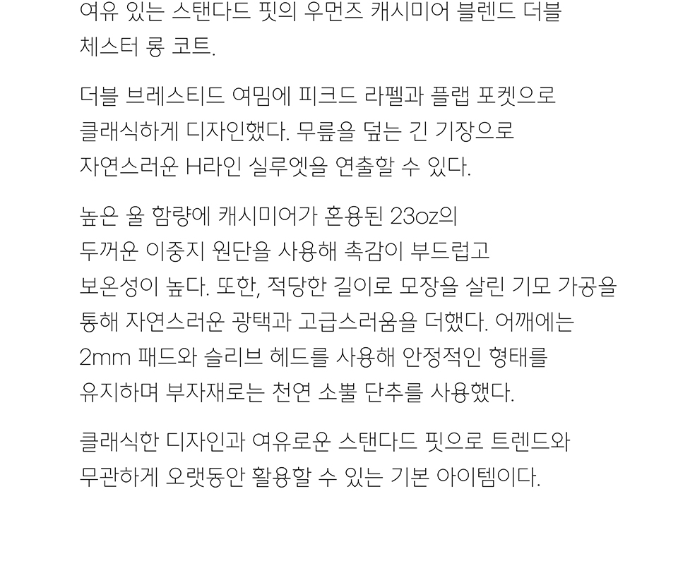 우먼즈 캐시미어 블렌드 더블 체스터 롱 코트 [오트밀]