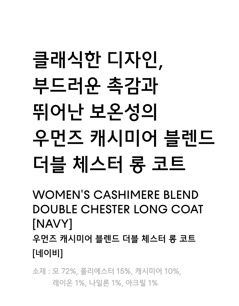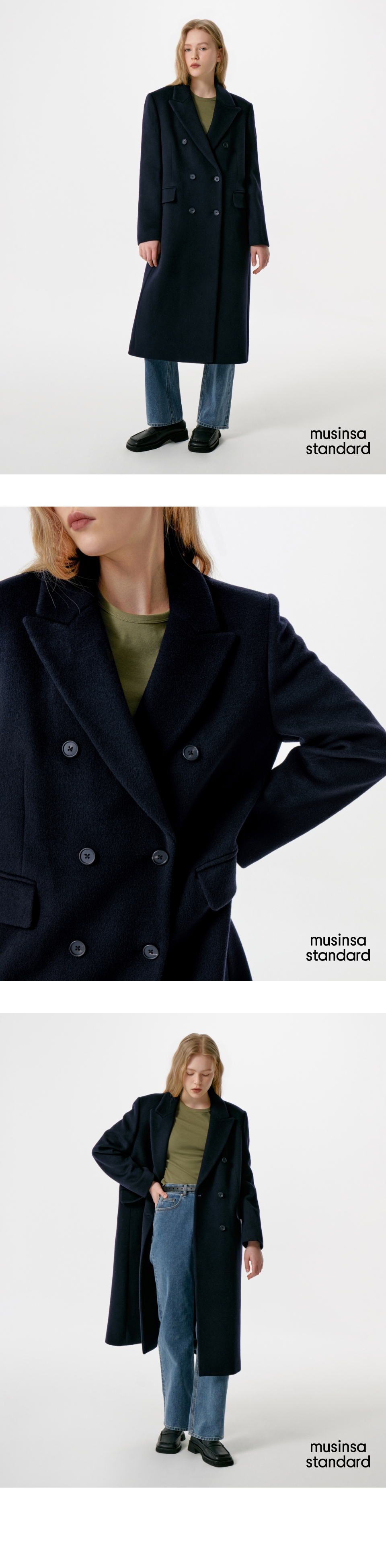 우먼즈 캐시미어 블렌드 더블 체스터 롱 코트 [네이비]