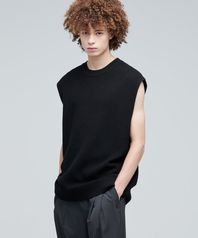 텍스쳐드 크루 넥 니트 베스트 [블랙]