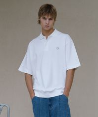 오버핏 로고 자수 카라 반팔 티셔츠 [화이트]