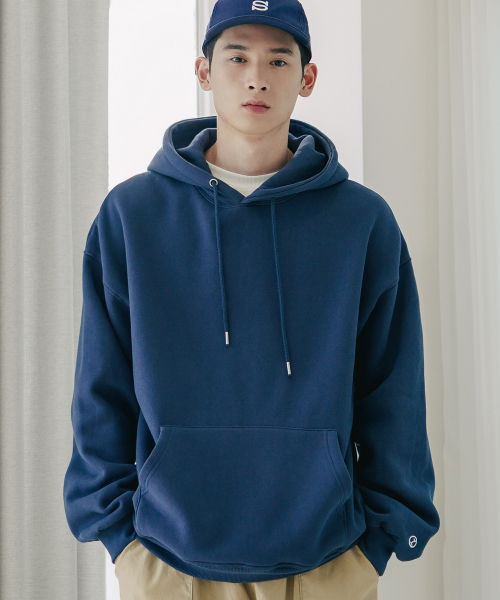 로그 오버핏 기모 후드 네이비 YHHD2302